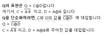 이제 부울 대수 표현 Q를 단순화해 보겠습니다.
