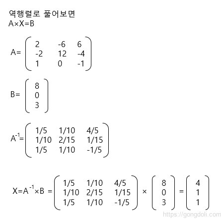 이제 3개의 방정식과 3개의 미지수가 있습니다.