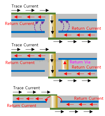 따라서 Signal Via를 적용할 경우에는 여러 Return Current 층을 지나지 않고 Reference층 하나만 지나면 귀환경로의 끊어짐을 방지 할 수 있습니다.